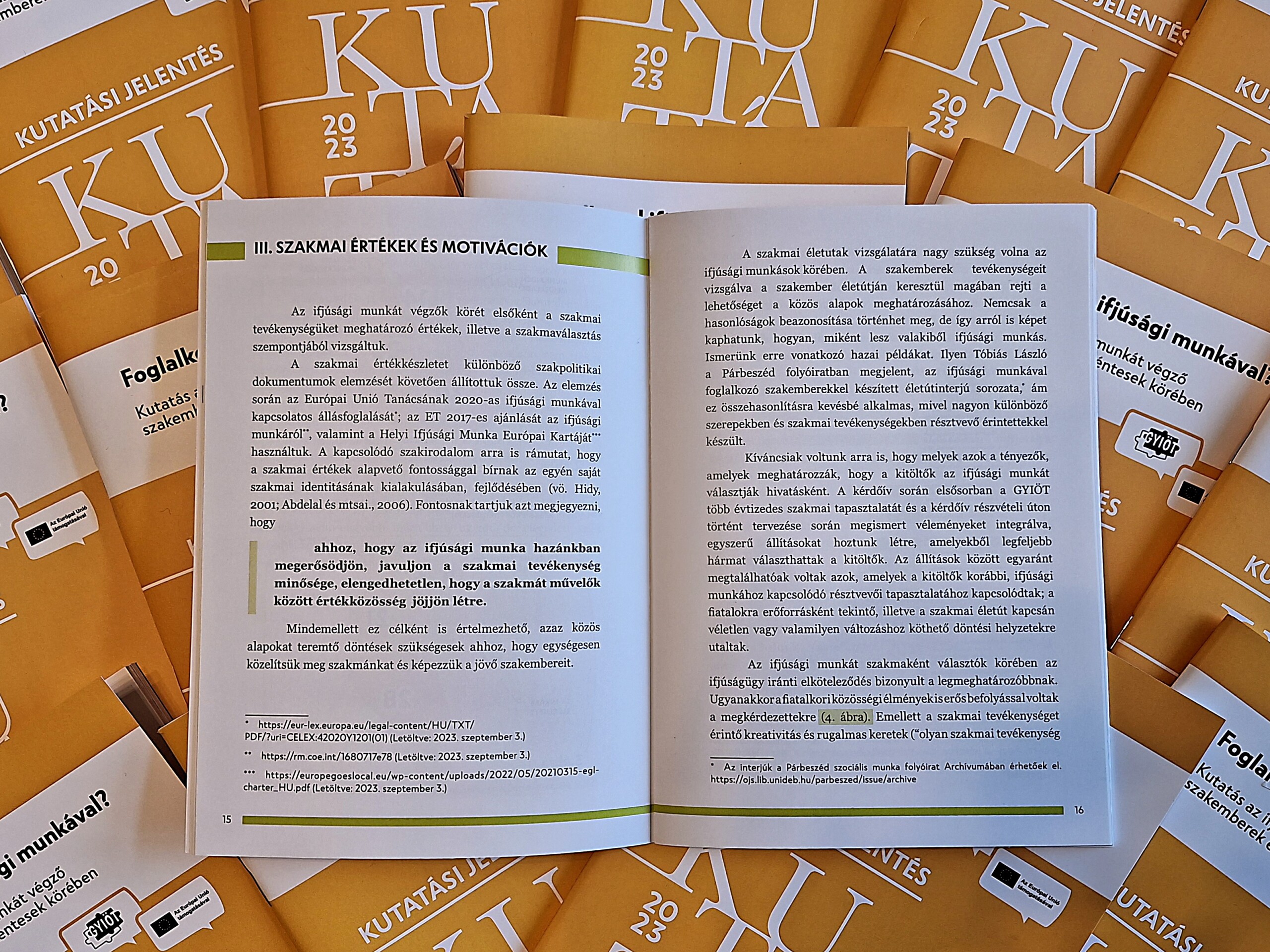 Örömmel tájékoztatunk minden érdeklődőt és közreműködőt, hogy elérhetővé vált a „Foglalkozol ifjúsági munkával? Kutatás az ifjúsági munkát végző szakemberek és önkéntesek körében 2023.” című kutatás kérdőíves adatfelvétel eredményeit bemutató és elemző, értelmező gyorsjelentés nyomtatott formátuma.