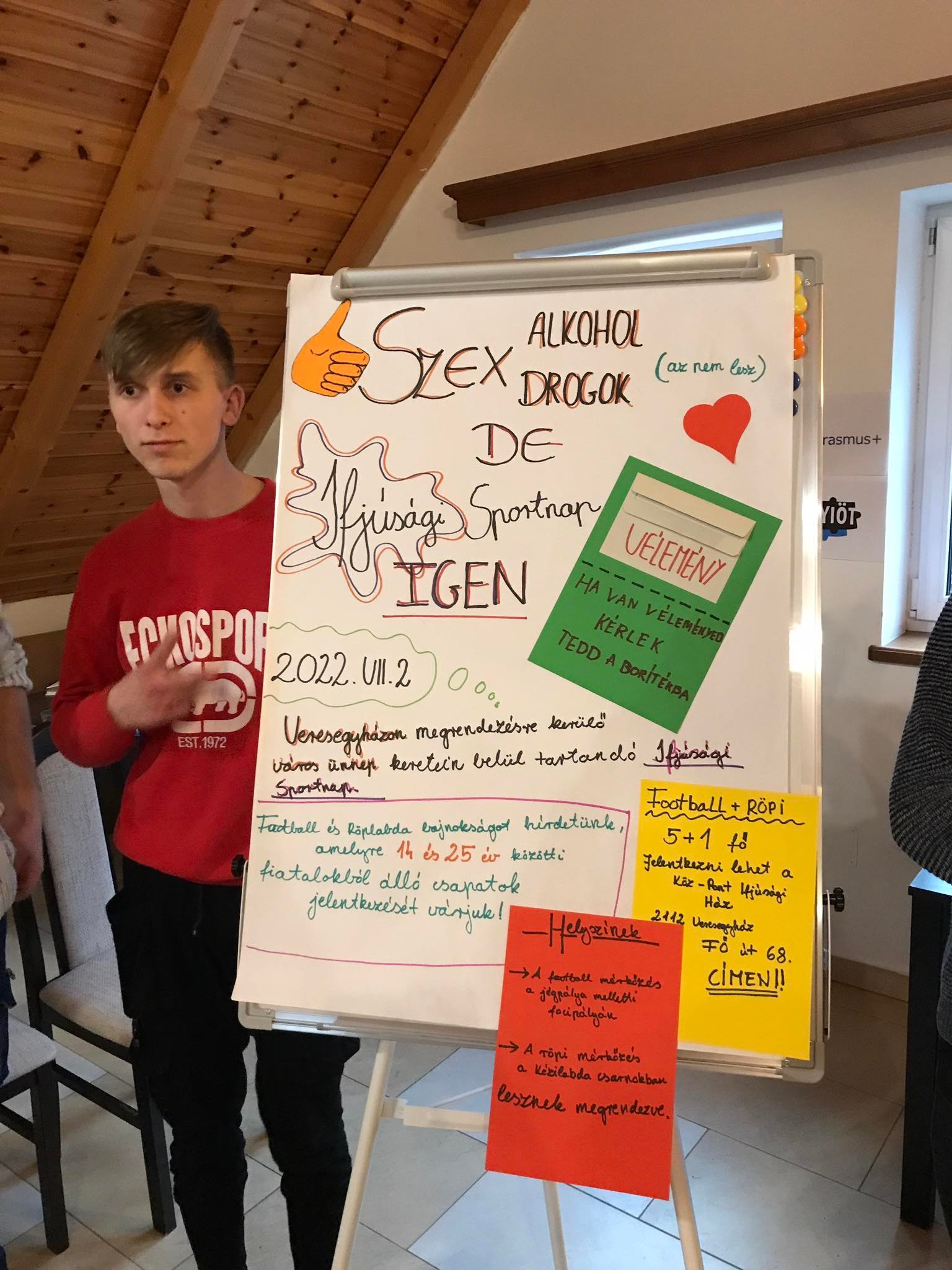 „Kapcsolat építésre a legjobb program. Nagyon jól éreztem magamat és rengeteget tanultam mind a két alkalommal. A második alkalommal (azaz most) több volt a velem egy idős fiatal és így könnyebb volt a beilleszkedés és ismerkedés. A szimulációs gyakorlatok végrehajtása közben jó volt Gáspival és Nórival dolgozni és ez által őket is jobban megismerni. A saját projektünkön dolgoztunk sokat és ebben segített az is hogy a szimulációs gyakorlatokból ilyen kiállítást csináltak. Nekem nem csak a csoportos munkában segített és az együttműködésben hanem a saját életemben is fel tudom használni dolgokat. A trénerek és szervezők egyéni problémákban is segítettek.”