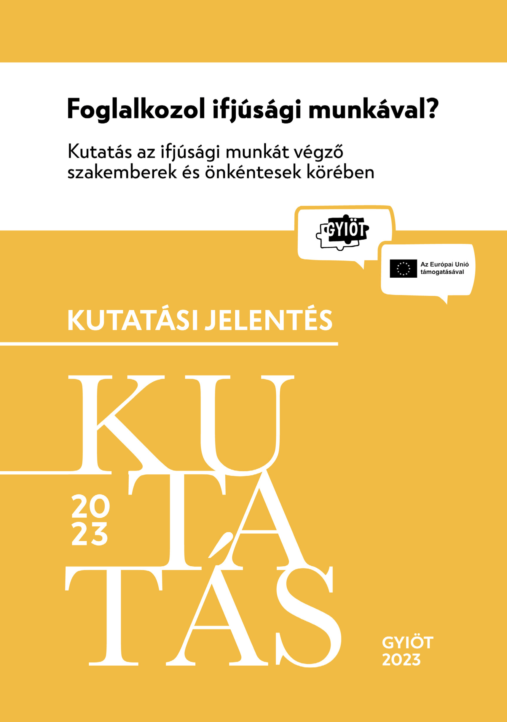 Foglalkozol ifjúsági munkával? Kutatás az ifjúsági munkát végző szakemberek és önkéntesek körében 2023. című kutatás kérdőíves adatfelvétel eredményeit bemutató és elemző, értelmező gyorsjelentés.